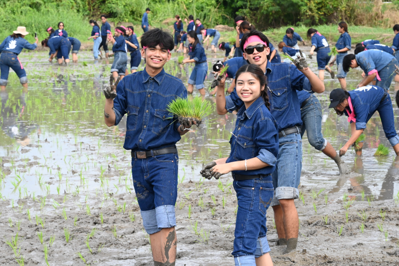 คณะเกษตร กำแพงแสน จัดโครงการเสริมสร้างทักษะทางการเกษตร ประจำปีการศึกษา 2568 ประเพณีดำนา ให้แก่นิสิตใหม่ คณะเกษตร กำแพงแสน KU85 เพื่อส่งเสริมให้นักศึกษาได้เรียนรู้และฝึกฝนทักษะด้านการเกษตร โดยเฉพาะการทำนาเปียกสลับแห้ง เป็นการสืบสานประเพณีอันดีงาม และปลูกฝังจิตสำนึกในการอนุรักษ์วิถีชาวนา ภูมิปัญญาท้องถิ่นด้านการเกษตรของไทย เสริมสร้างความสัมพันธ์ ความสามัคคี และการทำงานเป็นทีมระหว่างรุ่นพี่รุ่นน้อง สร้างความภาคภูมิใจในการเป็นนิสิตคณะเกษตร กำแพงแสน และตระหนักถึงคุณค่าของอาหาร ทั้งยังส่งเสริมให้นิสิตมีจำสำนึกในการดูแลสิ่งแวดล้อม เมื่อวันเสาร์ที่ 19 กรกฎาคม 2568 ณ ฟาร์มนิสิตคณะเกษตร กำแพงแสน