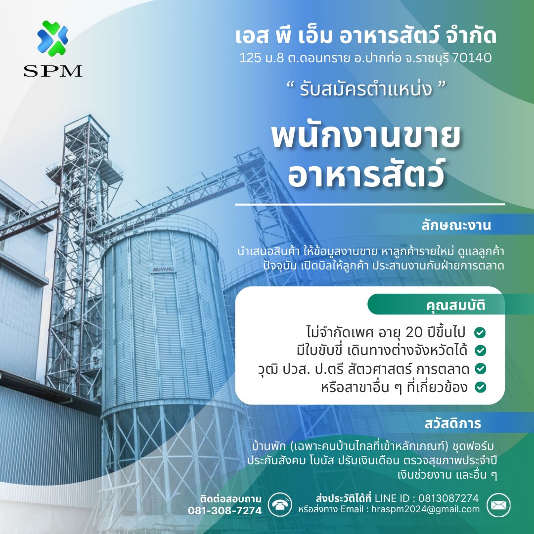 บริษัท เอส พี เอ็ม อาหารสัตว์ จำกัด จ.ราชบุรี รับสมัครงาน สาขาสัตวศาสตร์