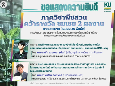 ภาควิชาพืชสวน คว้ารางวัล ชมเชย 2 ผลงาน ภาคบรรยาย (SESSION พืชผัก) จากการประชุมวิชาการพืชสวนแห่งชาติ