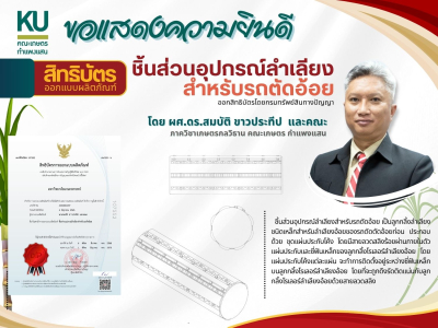 สิทธิบัตรออกแบบผลิตภัณฑ์ "ชิ้นส่วนอุปกรณ์ลำเลียงสำหรับรถตัดอ้อย"